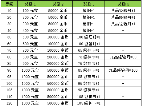 玩家等级满足条件将获得对应档位奖励。