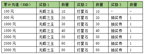 活动期间内玩家累计充值达到对应档位可获得奖励,同时获得惊喜转盘抽奖券,使用抽奖券可以抽取丰厚大礼。