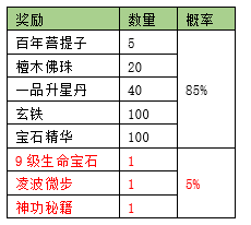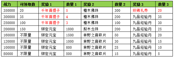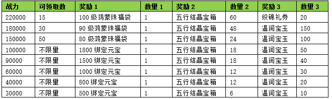 活动期间内玩家拥有的五行珠战力达到要求,可以获得对应的奖励。