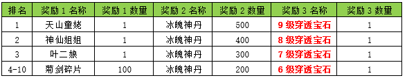 | 128 | 神仙姐姐 | 1 | 冰魄神丹 | 300 | 100000金币 | 10 | ||