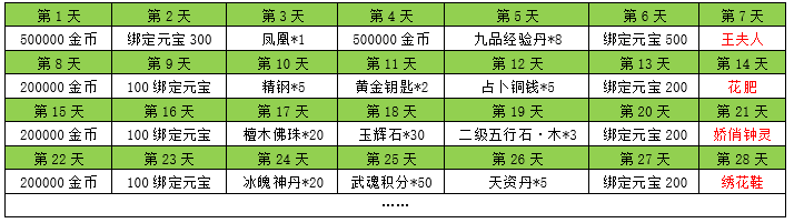 | 30 | 寻侠令 | 40 | 100000金币 | 10 | ||||