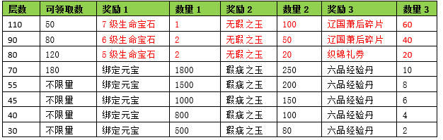 活动期间内玩家通关藏经阁层数满足要求可获得对应奖励。