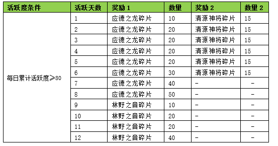 1. 活动期间内玩家活跃条件达到指定要求可以领取清源神将碎片。
