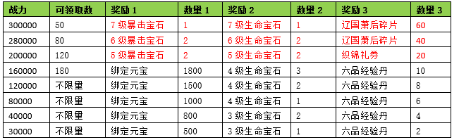 活动期间内玩家拥有的宝石战力达到要求,可以获得对应的奖励。