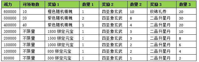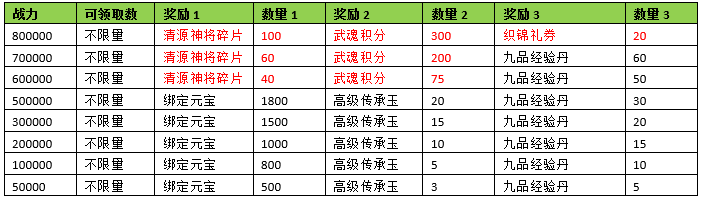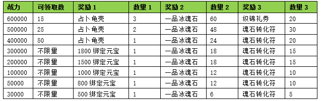 活动期间内玩家拥有的武魂战力达到要求,可以获得对应的奖励。