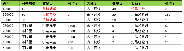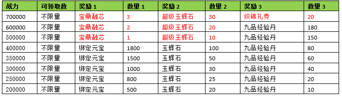 活动期间内玩家拥有的宝鼎战力达到要求,可以获得对应的奖励。