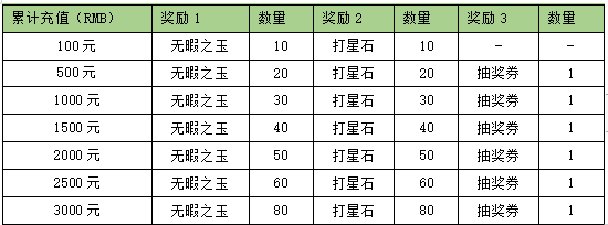 活动内容:活动期间内玩家充值金额满足对应档位,将获得对应奖励。