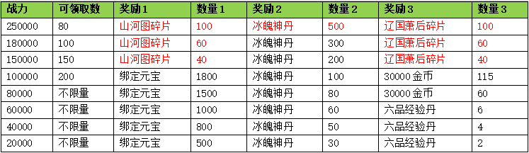 活动期间内玩家拥有的宝鼎战力达到要求,可以获得对应的奖励。