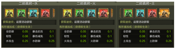 二郎真君染色碎片II:任选其一:【二郎真君-水碎片】*1、【二郎真君-火碎片】*1、【二郎真君-土碎片】*1。