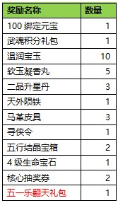 五一乐翻天礼包:开启后可获得500绑定元宝+花神·山茶碎片*20。