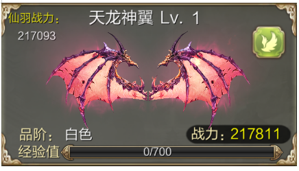 6.每日完成60次抽奖,获得的橙色神翼碎片可合成仙羽-绯魔斩界。