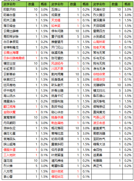 第二阶段奖励:消耗200非绑元宝可以参与抽奖;奖池中共包含94张武学,品质分别为红、橙、紫、蓝、绿、白,包含新武学-太祖长拳。