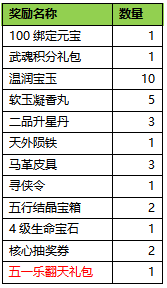 五一乐翻天礼包:开启后可获得500绑定元宝+花神·山茶碎片*20。