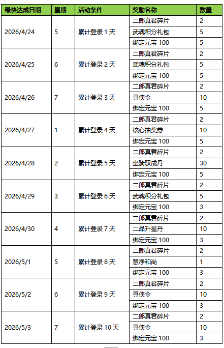 活动时间:4月27日更新后-5月3日