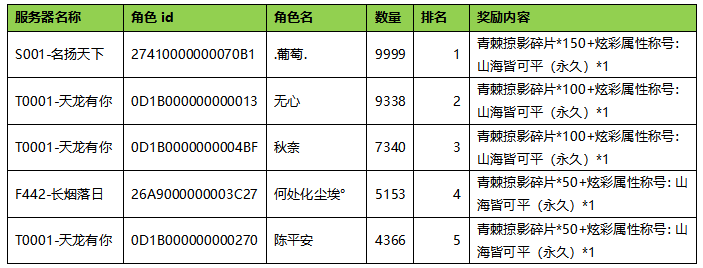 5.奖励将在活动结束后14个工作日内以邮件形式发放,请玩家注意查收。