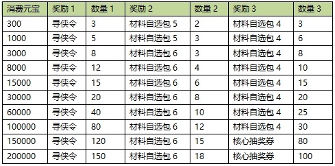 3. 本次消费最高档位200000非绑定元宝,所有奖励向上兼容;